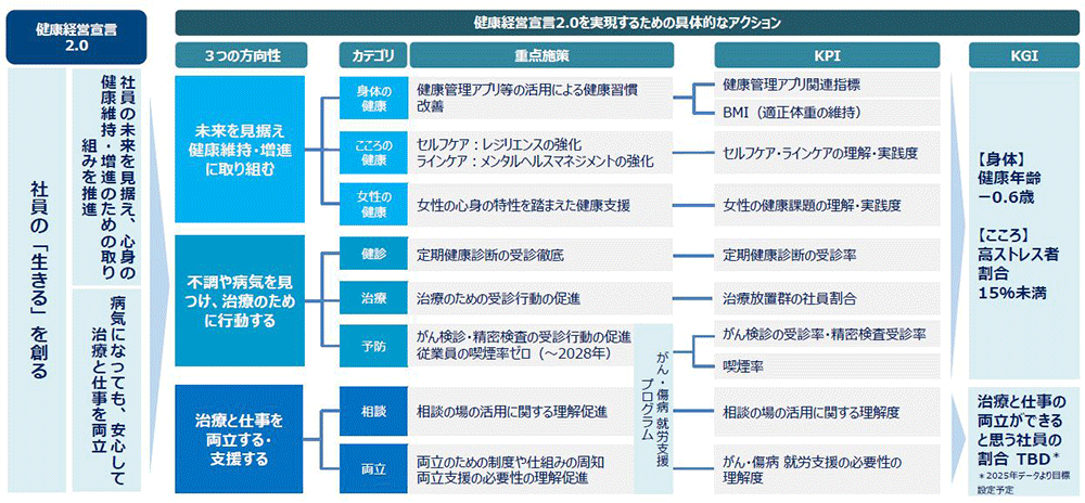 「人生100年時代において、健康寿命延伸の重要性が高まるなか、当社に就労しているときに、健康を大切にする習慣を身につけてほしい」という想い、さらには、「病気になった社員が治療に専念しながら安心して働けるよう、これまで以上に治療と仕事の両立が当たり前に選択できる会社であり続ける」という決意を込めています。