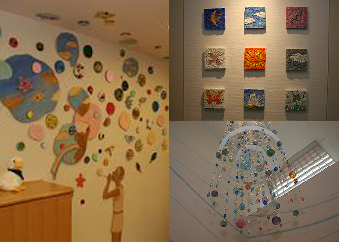 子どもたちが青空に向かって大きく成長するようにとの願いを込めて、「空」をテーマに設計・デザインしています。館内には「空」をイメージしたオブジェを飾り、内装は水色や青などで統一された明るい空間となっています。